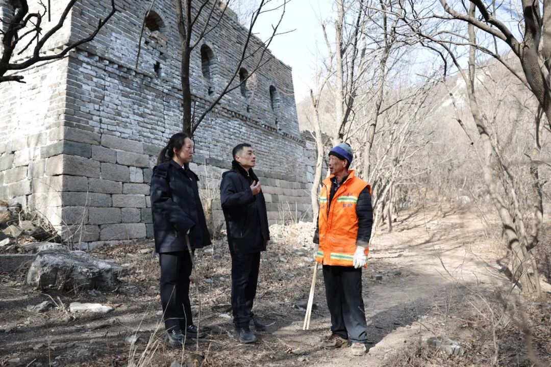 2025年2月19日,北京市怀柔区检察院检察官正在向长城保护员了解该区域内长城保护情况。