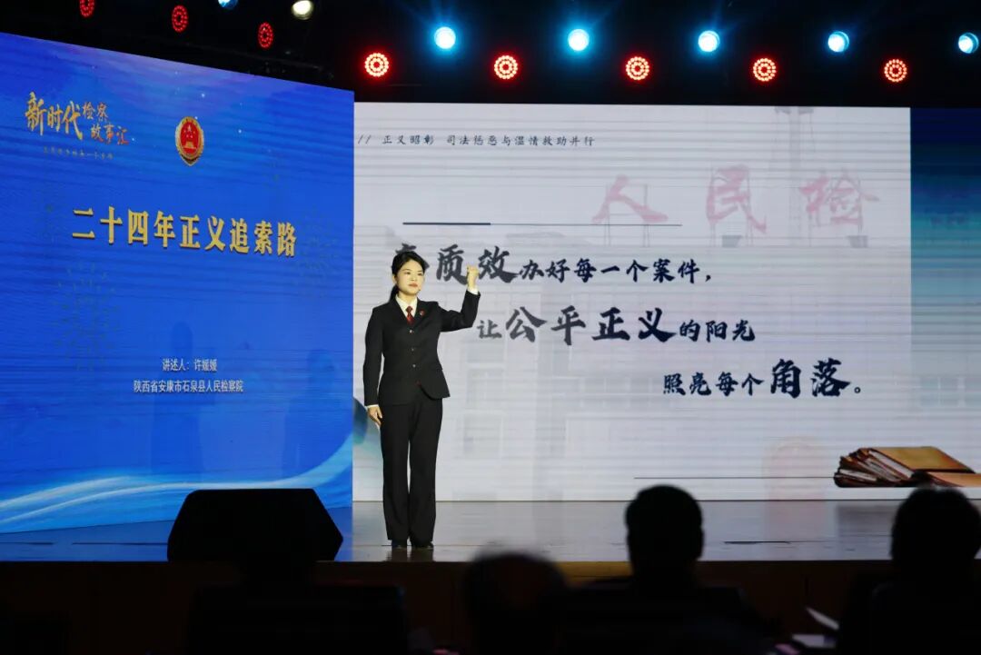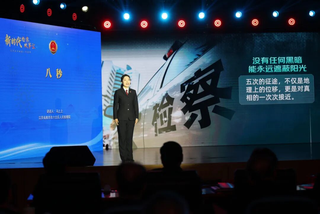 荣获“十佳检察办案故事”的检察机关代表在现场讲述。(滑动查看更多)