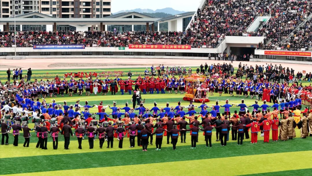 ▲3月31日,当地群众在广西三江侗族自治县古宜镇表演歌舞。 新华社发(吴练勋摄)
