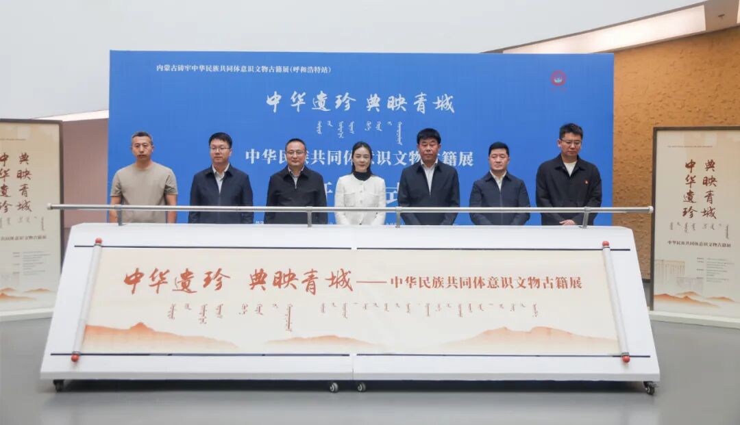 2025年9月30日,由自治区民族事务委员会指导,自治区民委少数民族古籍征集研究室、呼和浩特市民族事务委员会、呼和浩特市档案史志馆主办,呼和浩特博物院(昭君博物院)、呼和浩特市图书馆、盛乐博物馆承办,内蒙古自治区图书馆、社会科学院图书馆协办的“内蒙古铸牢中华民族共同体意识文物古籍巡展(呼和浩特站)”之“中华遗珍 典映青城——铸牢中华民族共同体意识文物古籍展”原创性临时展览在昭君博物院正式开展。
